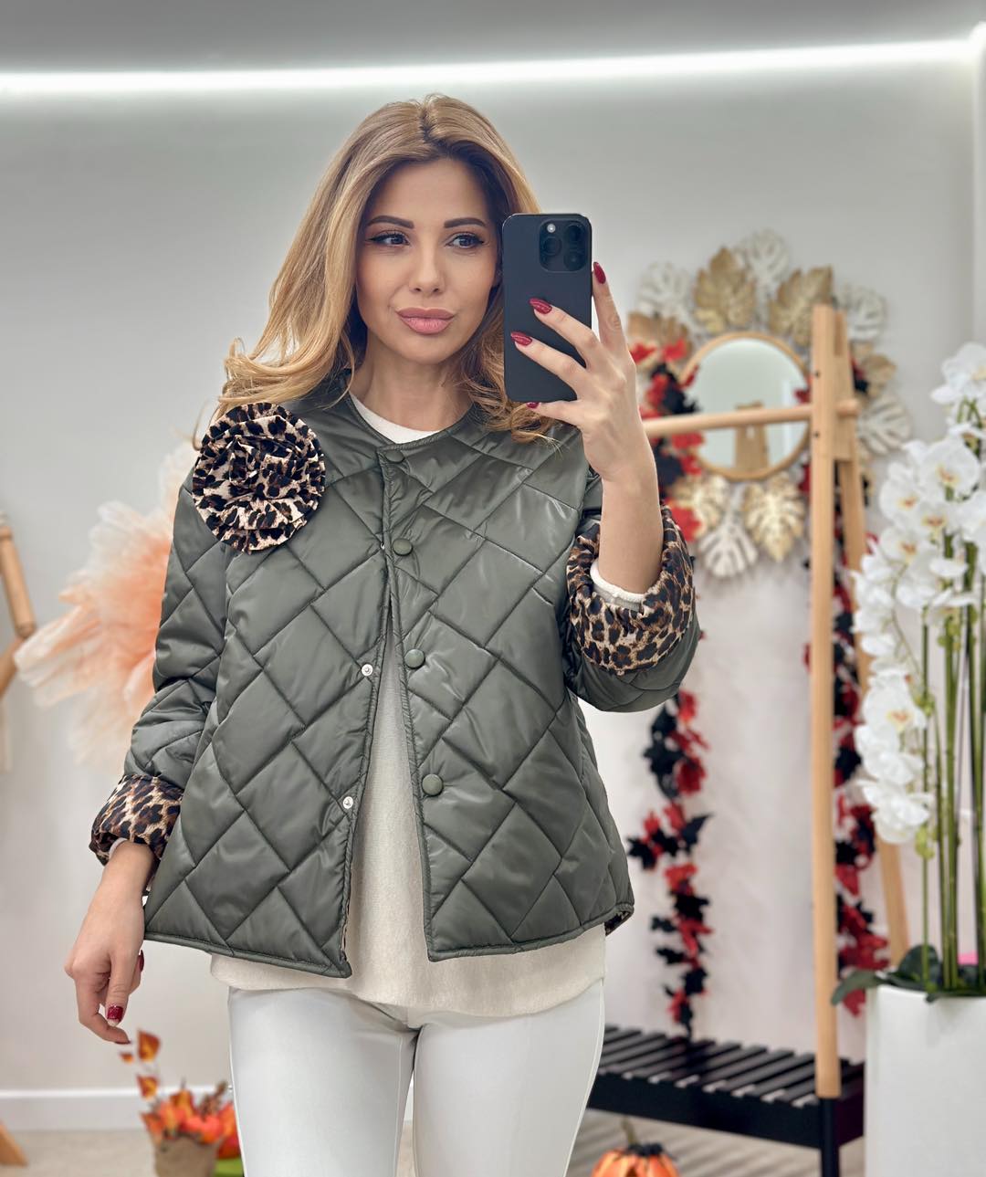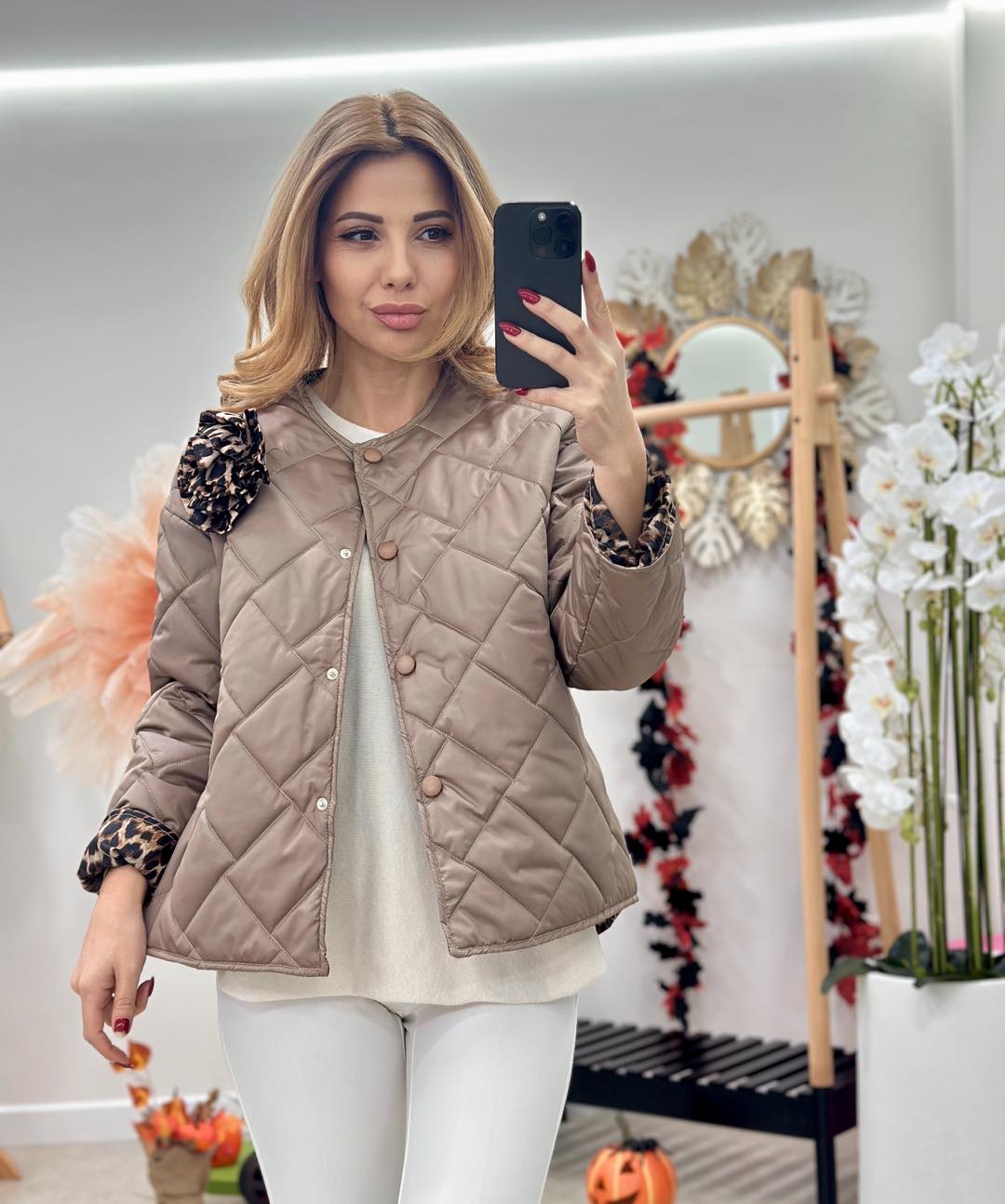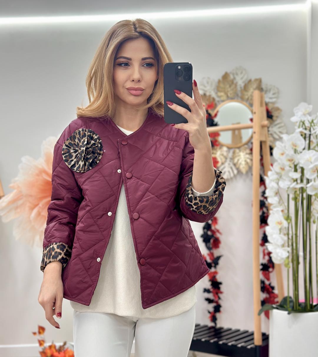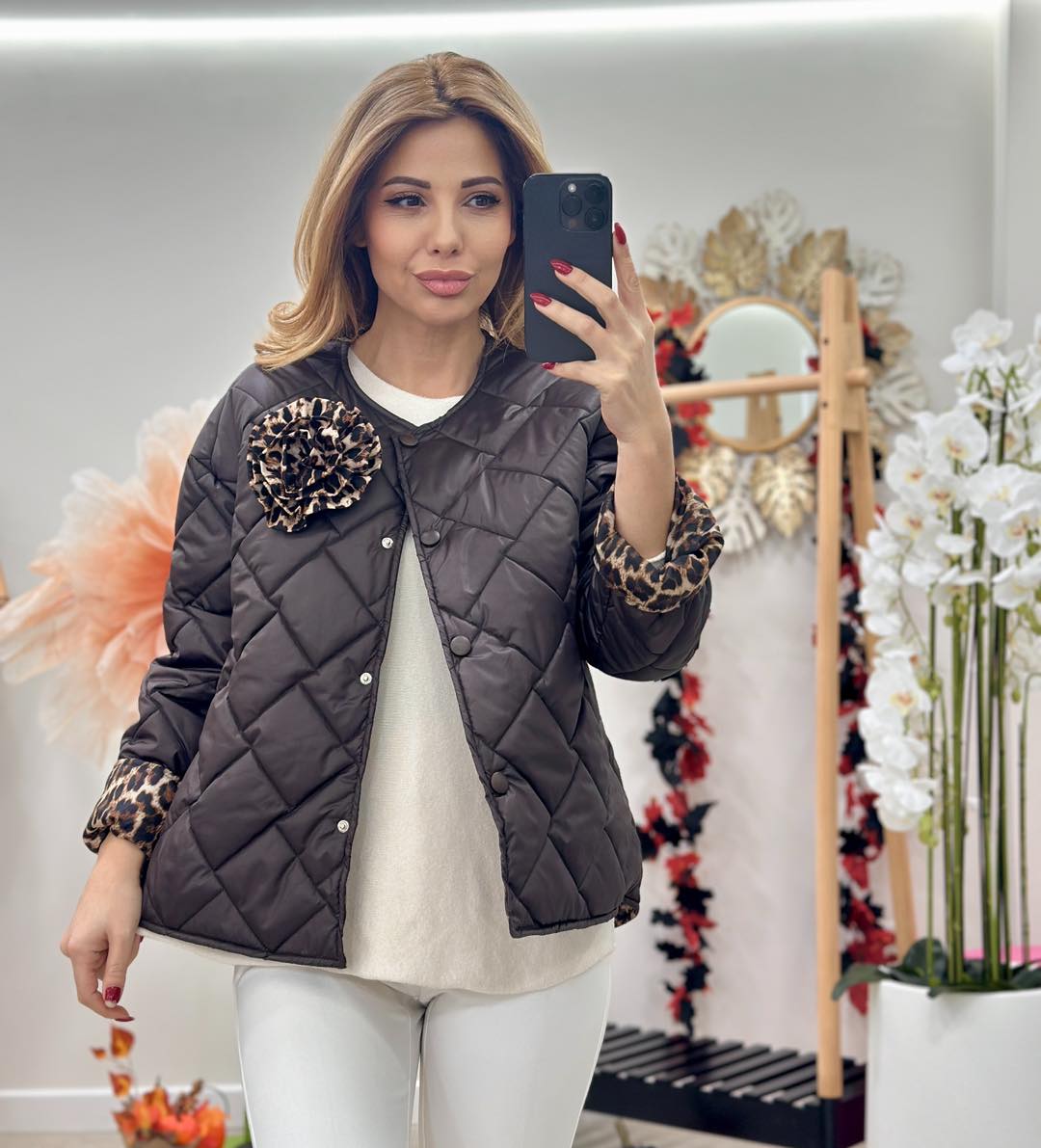 Gecuta Sandra prezinta un model animal print pe interior si o brosa in forma de floare, detasabila.