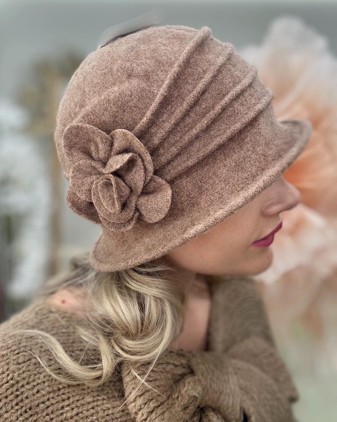 Pălăria cloche este realizată dintr-o lână moale, cu formă rotunjită și bor îngust ce conturează delicat fața. Este un accesoriu feminin și rafinat, ideal pentru ținute elegante sau cu influențe retro.