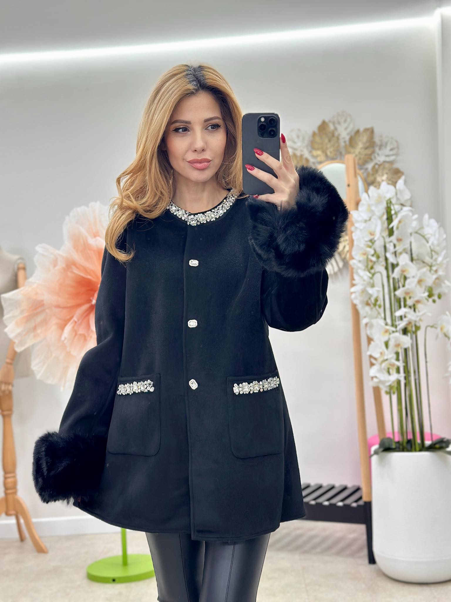 Material: Stofa cu blanita la maneci