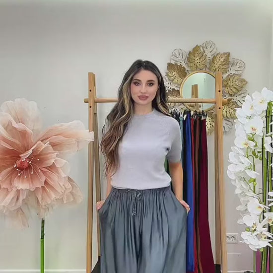 Un pantalon super fluid si lejer, prezinta buzunare si este reglabil in talie cu snur.