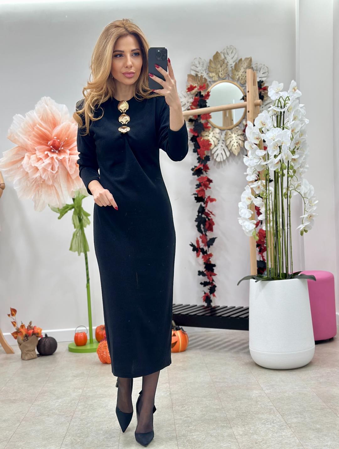 HERA prezinta nasturi decorativi in forma de scoici aurii, pernute pe umeri si slit la spate