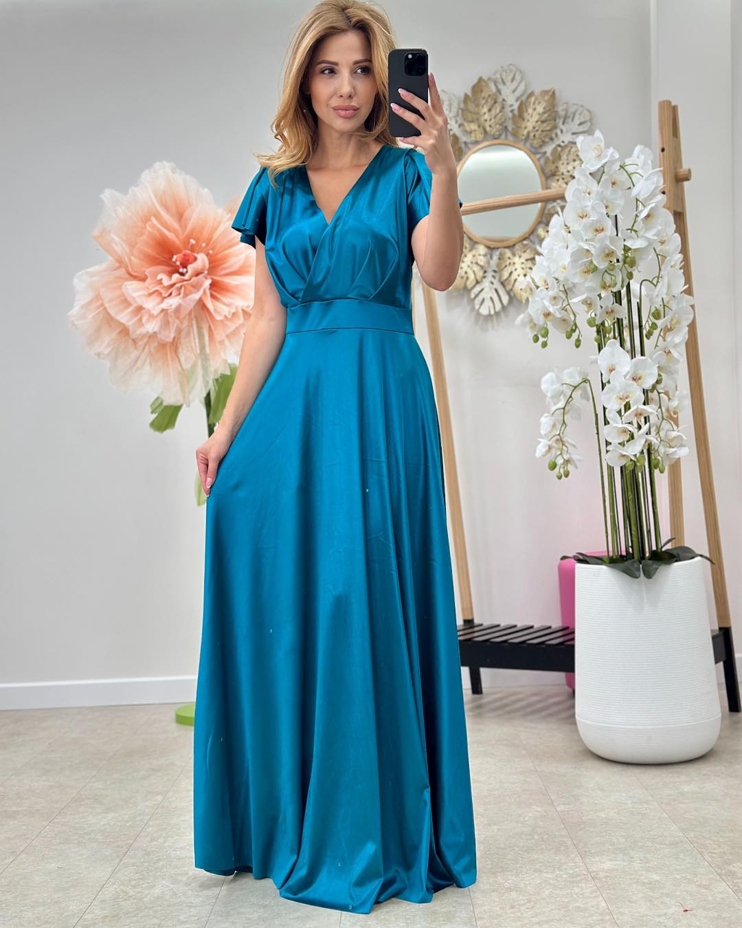 Penelope este o rochita ampla cu fermoar ascuns la spate, cupe si volanase la umeri.