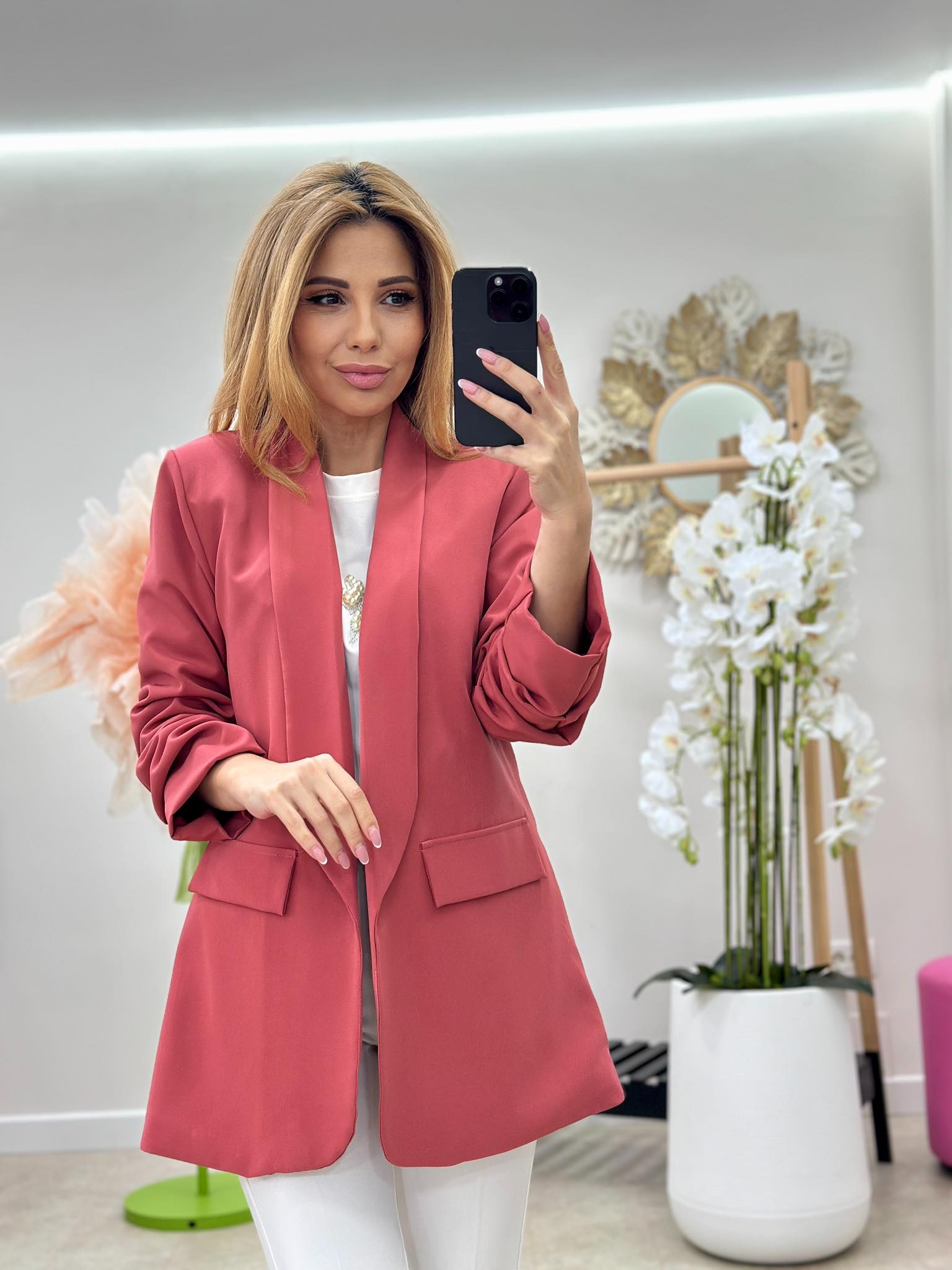 Sacou din stofa cu captuseala, fara sistem de inchidere