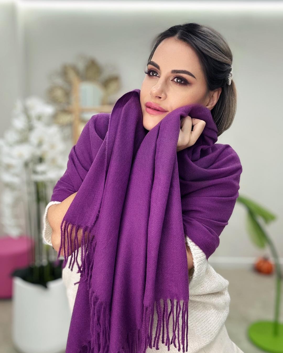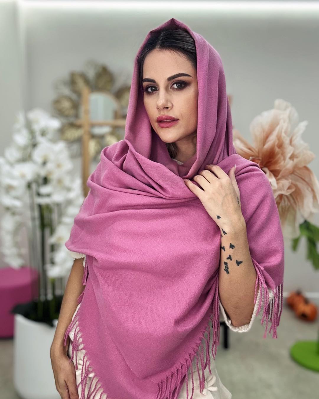 Salul din cașmir se remarcă prin textura sa extrem de pufoasă și plăcută la atingere.